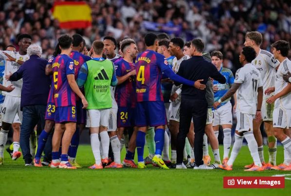 在剛剛結(jié)束的西班牙國(guó)家德比中,皇家馬德里與巴塞羅那的球星們?cè)诮K場(chǎng)哨響后爆發(fā)大規(guī)模沖突,為這場(chǎng)激烈的對(duì)決畫上了一個(gè)火爆的句號(hào)。