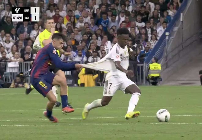 巴薩在場上頻繁被動挨打,佩德里領銜的中場自然難辭其咎。本場比賽,佩德里的曝光度依舊很高,只不過基本上都是冥場面,上半場他對維尼修斯連拉帶拽,為皇馬球衣的質量做了一波宣傳,自己因為戰(zhàn)術犯規(guī)吃了黃牌。到了下半場,自己在一次帶球時不慎趟大了,進攻過程中鏟刀倒瓊阿梅尼再吃一黃,最后時刻被罰下場,而在他下場后,巴薩和皇馬直接上演了全武行,堪稱國家德比的薩拉熱窩。